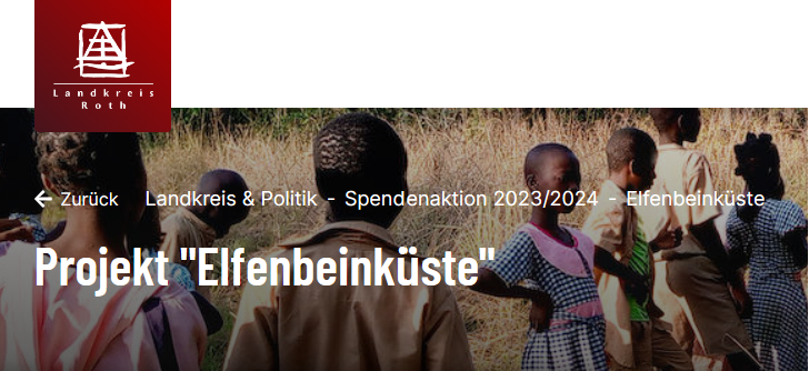 Das Landratsamt Roth bringt jedes Jahr die Aktion „Jeder Bürger ein Euro“ für gemeinnützige Projekte auf den Weg. In diesem Jahr hat Herr Landrat Ben Schwarz unser Projekt zum Erhalt der Biodiversität im Comoé Nationalpark als eines von vier Projekten für diese Aktion ausgewählt. Die Details finden Sie unter https://www.landratsamt-roth.de/landkreis/spendenaktion2023/projekt-elfenbeinkueste.