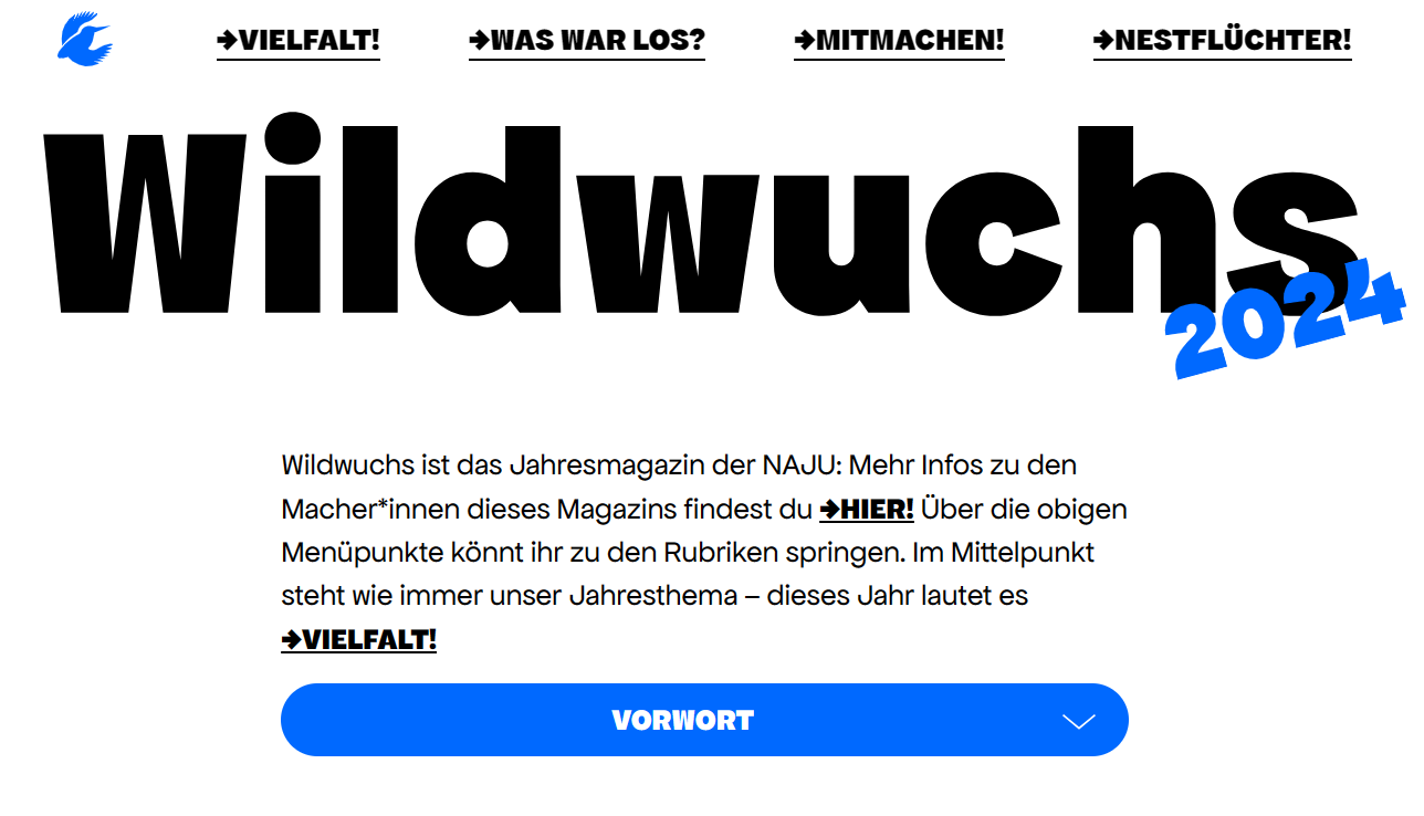 Wild, bunt, laut, modular, vielfältig - passend zum Jahresthema „Vielfalt“. So begrüßt das papierlose Online-Webzine der NAJU, erstmals seine Mitglieder in 2024. Und die DSCN war mit einem Beitrag mit an Bord. Den ganzen Artikel finden Sie hier:
